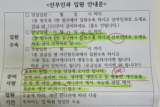 마지막으로, 수술 당일이나 입원 시 챙기면 좋은 준비물입니다. 저도 여기저기 찾아보면서 준비중이에요